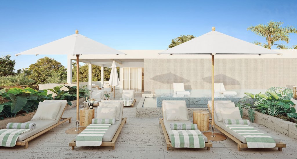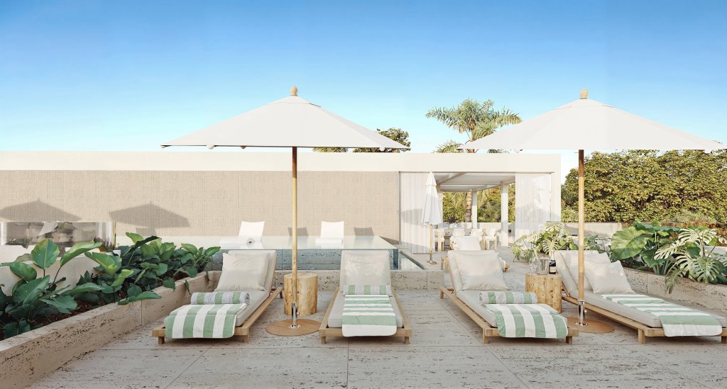 - Exceptional Sky Terrace rooftop level with pool, bar, lounge areas, and panoramic sea views.