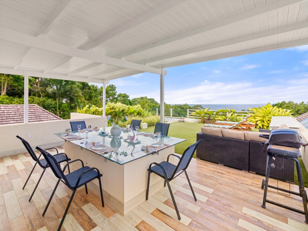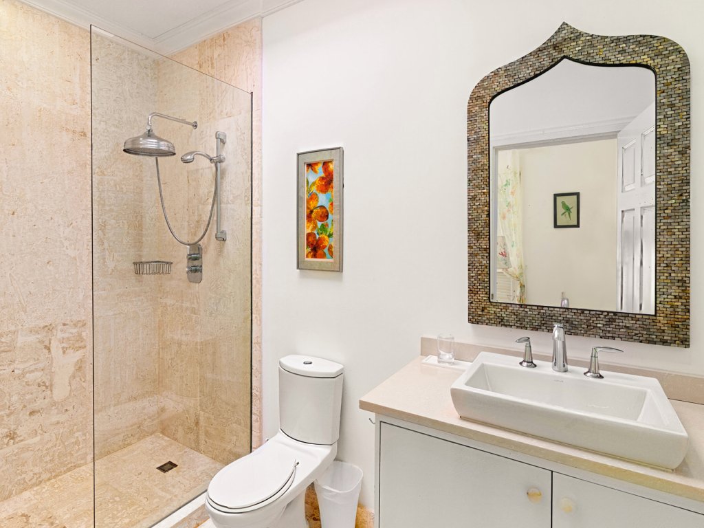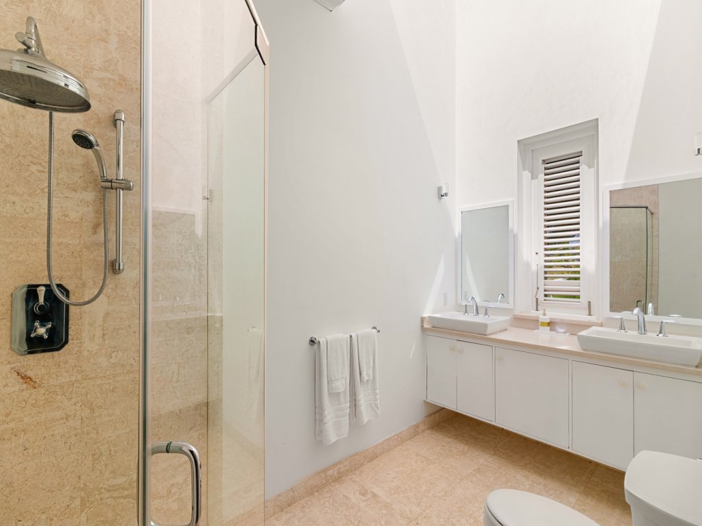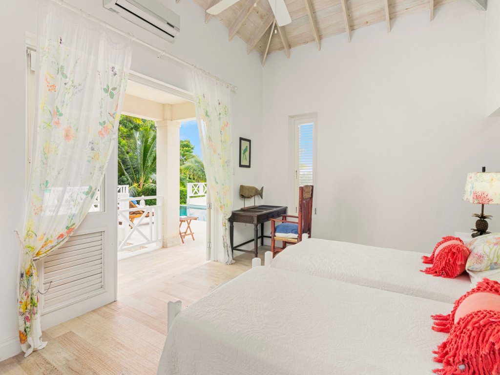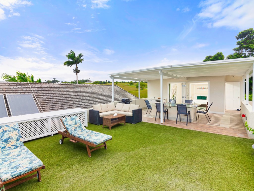 All 5 bedrooms are en-suite with large bathrooms. Four of the bedrooms are located on the ground floor while the 5th bedroom is located on the roof deck. Constructed in 2022, this 5th bedroom is the newest addition to Palm Sanctuary. This incredible roof deck bedroom has its own superb entertaining area with jacuzzi and stunning views over Apes Hill Golf course and out to the Caribbean Sea.