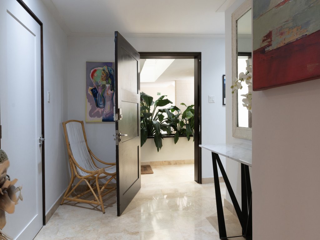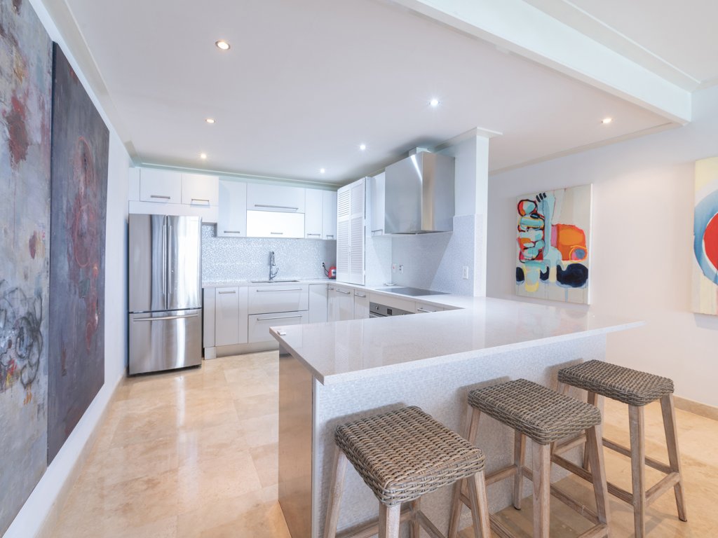 Coral Cove 10 is a stunning, fully air-conditioned 3-bedroom, 3.5-bathroom apartment located on the pristine Paynes Bay Beach along Barbados’ famed West Coast. Situated on the fourth floor at the southern end of the building, this exquisite beachfront residence offers breathtaking, unobstructed views of the turquoise Caribbean Sea. Step inside to discover a beautifully appointed living space, designed with modern elegance and comfort in mind. The open-plan kitchen and living area flow seamlessly onto a spacious covered patio, creating the perfect setting for relaxing or entertaining while enjoying the spectacular ocean views. The sleek, fully equipped kitchen and the light-filled living area offers a chic yet relaxed ambiance. Each of the three generously sized bedrooms boasts its own en suite bathroom, walk-in closets, and individual split A/C units for ultimate comfort. The primary suite is a true retreat, featuring a deluxe king-size bed, private access to the verandah, and a luxurious en suite bathroom with dual sinks, and walk-in showers, all finished in elegant granite. Additional amenities include a powder room, laundry room, ample storage space, and a roadside balcony. The property also provides designated parking and 24/7 manned security for peace of mind. Coral Cove is ideally located in the heart of the island's West Coast, offering easy access to a range of popular beach bars, fine dining restaurants, and boutique shopping—whether by foot, road, or beach. The prestigious Sandy Lane Hotel and Golf Club are also just a short drive away. With its prime location, luxurious design, and exceptional amenities, Coral Cove 10 represents the very best in beachfront living on the island. Whether for a full-time residence or an idyllic getaway, this property is a rare gem in one of Barbados' most sought-after neighborhoods.