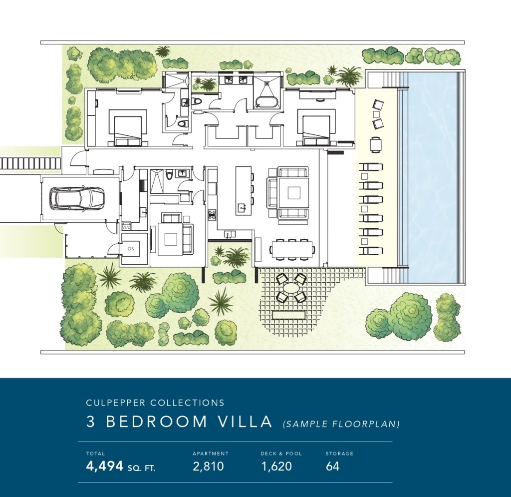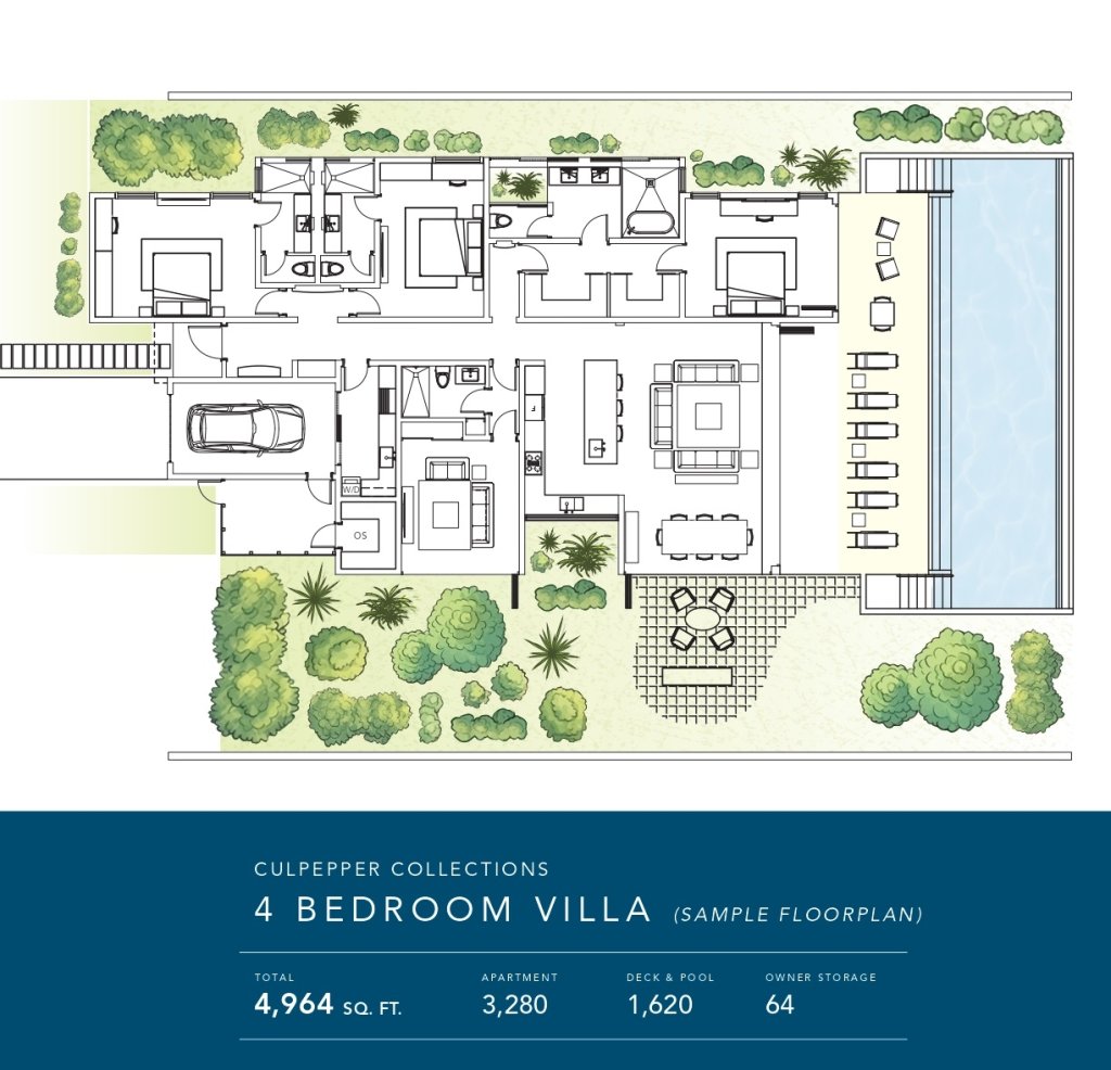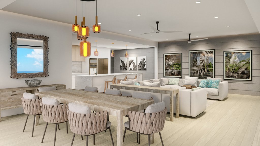 The three-bedroom villas span an impressive 4,494 square feet, while the four-bedroom residences offer an expansive 4,964 square feet. These exclusive homes boast private pools and captivating ocean views, creating an ambiance that seamlessly blends contemporary design with a focus on both entertainment and everyday living.