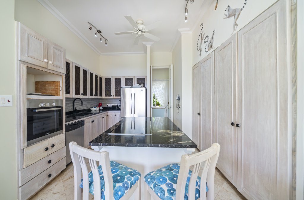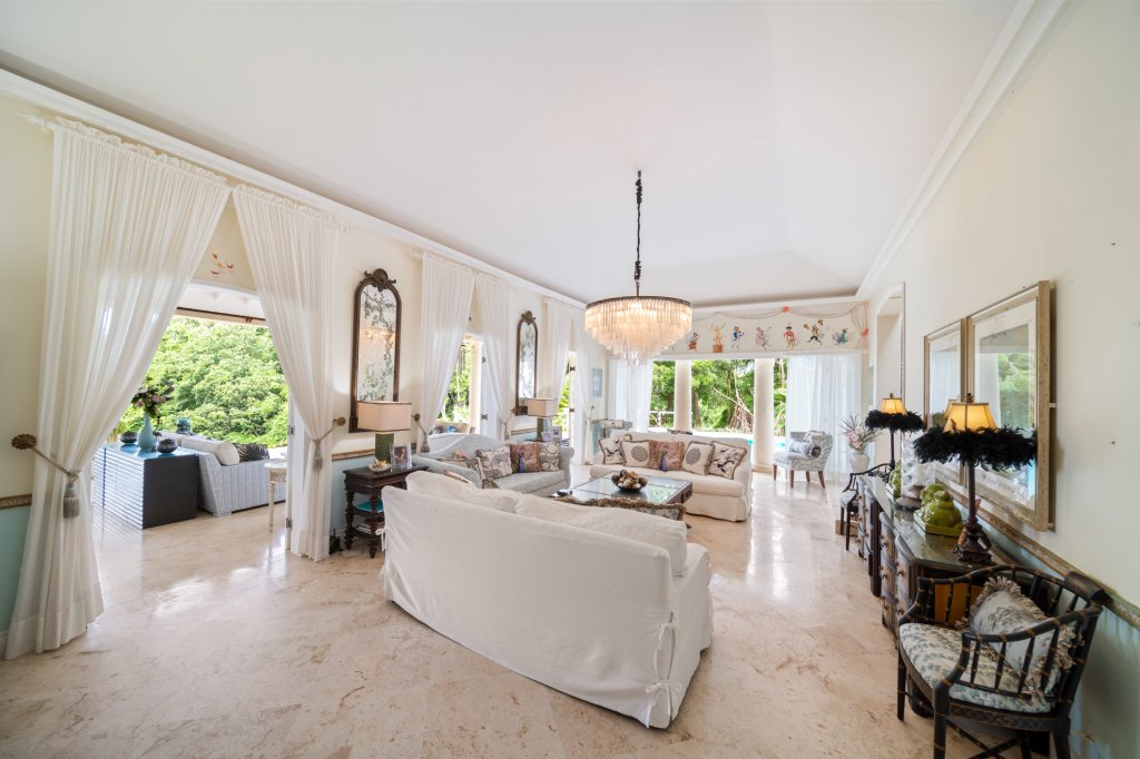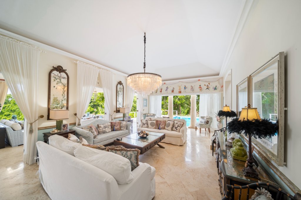 The villa’s architecture is designed to impress from the moment you step through the grand foyer. The high ceilings and thoughtful layout create an airy feel, leading you into the spacious open-plan living area. This elegant space seamlessly transitions to an extensive covered patio, offering breathtaking ocean views that are simply unforgettable. The patio and pool deck provide an exceptional setting for outdoor living, perfect for hosting gatherings or enjoying tranquil evenings as the sun sets over the Caribbean.
