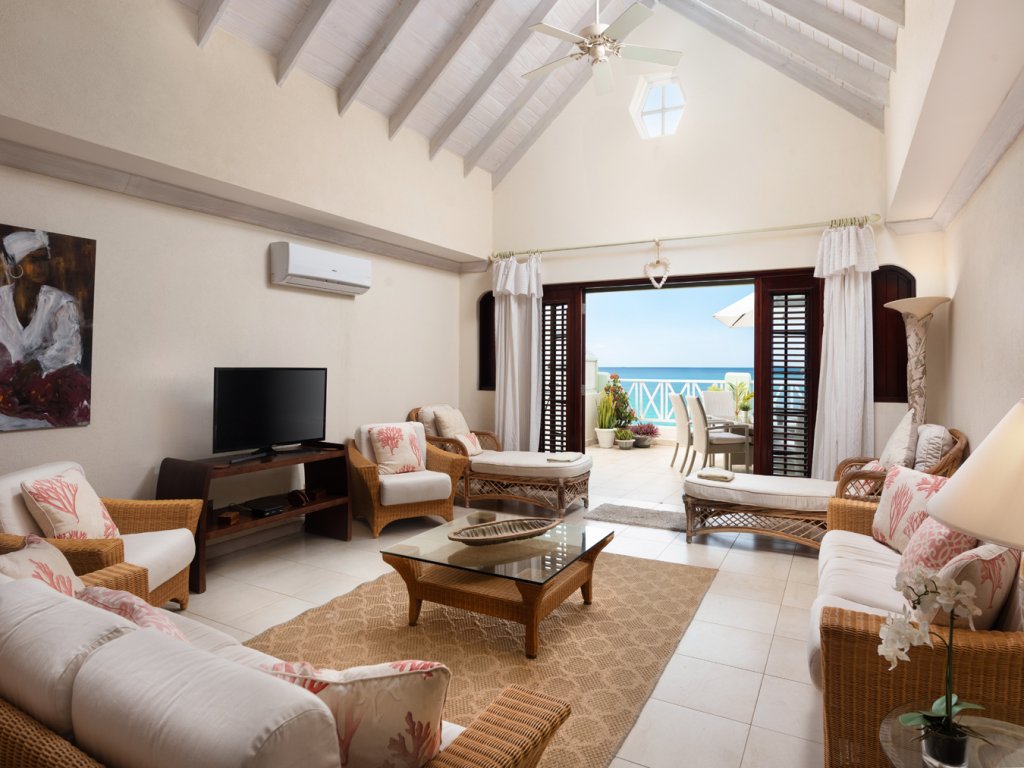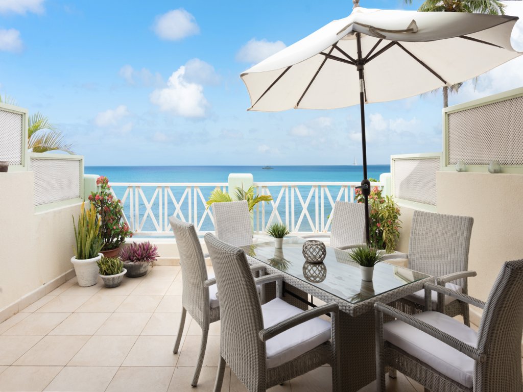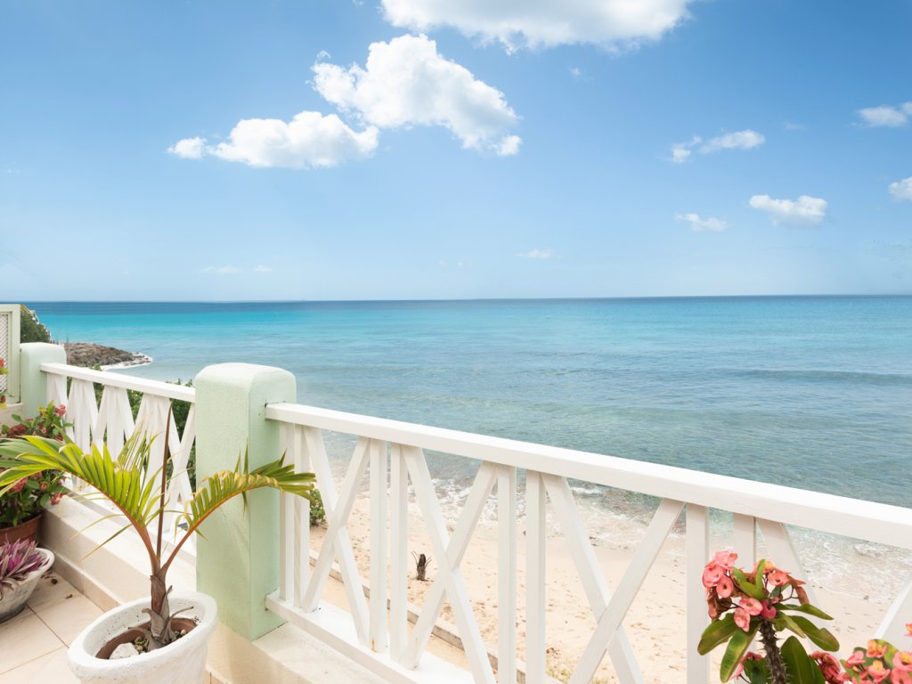 "Imagine this: you're on the West Coast of Barbados, just a hop, skip, and a jump from a gorgeous white sand beach, and you're staying in this amazing duplex penthouse called Jacaranda. Seriously, the sea views are totally unobstructed – you can see the ocean from almost everywhere!