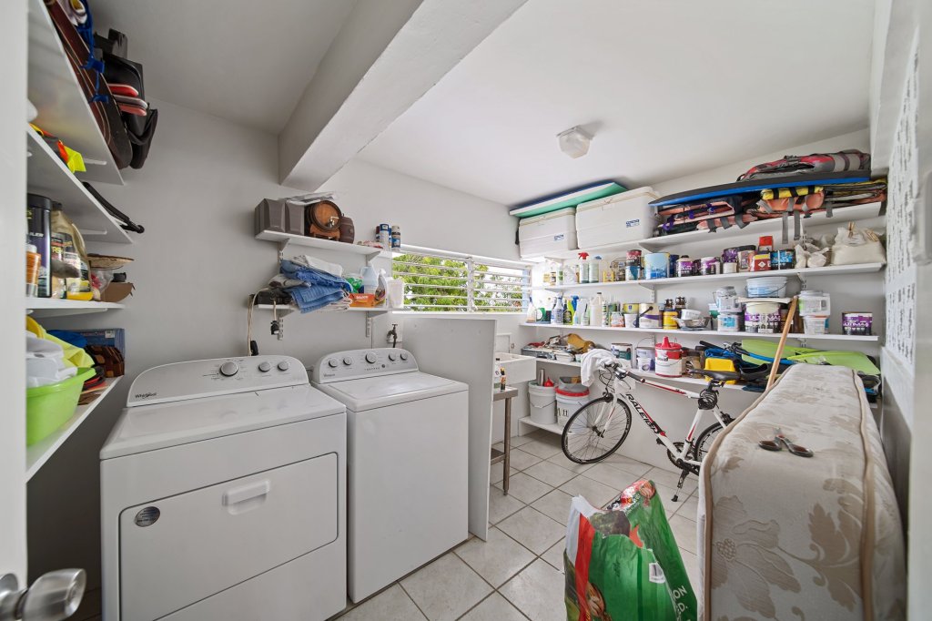 Multiple storage rooms and laundry area