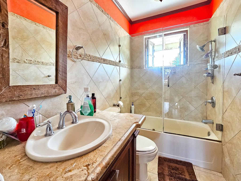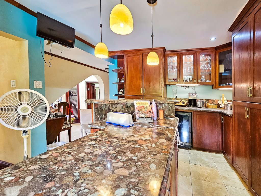 Step outside and you'll discover the real jewel of this property – the exceptional outdoor living space. Spend your days lounging by the large swimming pool, or relax on the elegant sundeck. The well-manicured gardens are a tropical paradise, filled with a variety of lush fruit trees that add both beauty and a touch of island flavor to the landscape. For ultimate relaxation and socializing, the outdoor wet bar is the perfect spot to enjoy refreshments with friends and family while taking in the serene surroundings.