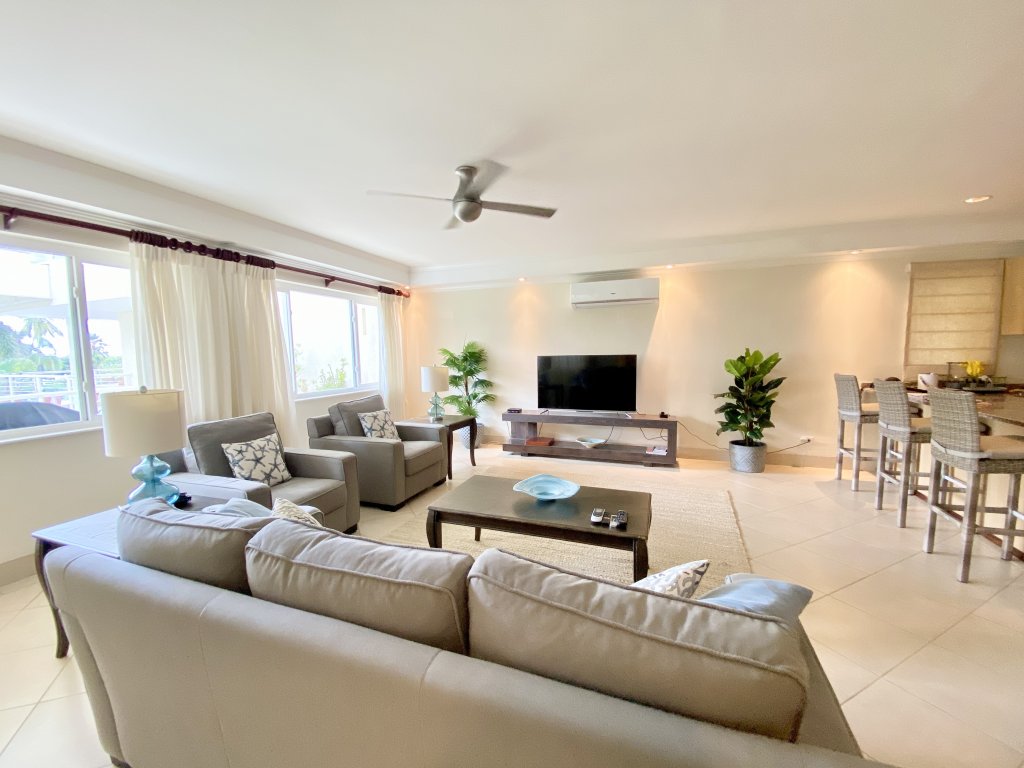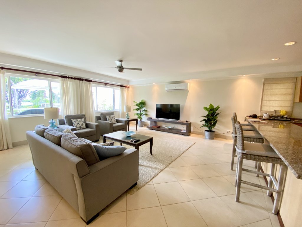 Discover unparalleled beachfront luxury living with this stunning 3-bedroom, 3.5-bathroom apartment, located in the sought-after Palm Beach community on Barbados' vibrant South Coast. Perfect for long-term rentals, this spacious 2,300 square foot second-floor apartment combines modern elegance with the tranquility of breathtaking views of the pool, lush gardens, and sparkling Caribbean Sea.
