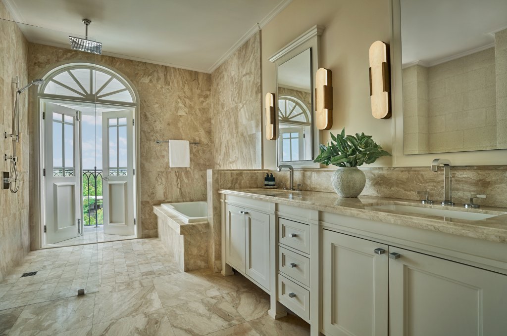 Impeccable Design: The villa features magnificent marble and limestone finishes, coral stone walls, and custom furnishings provided by RH Contract, creating a timeless, elegant aesthetic.