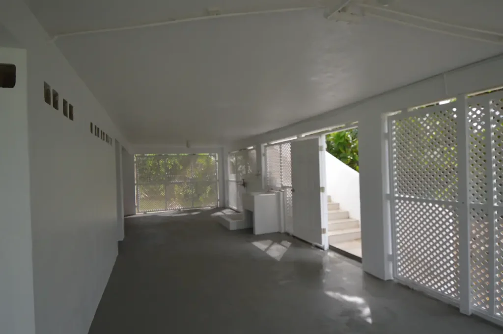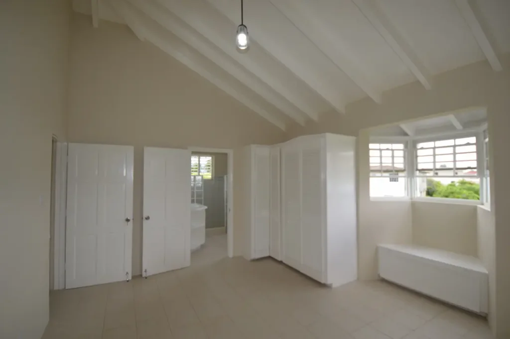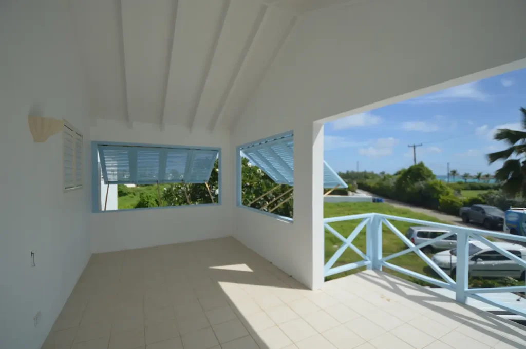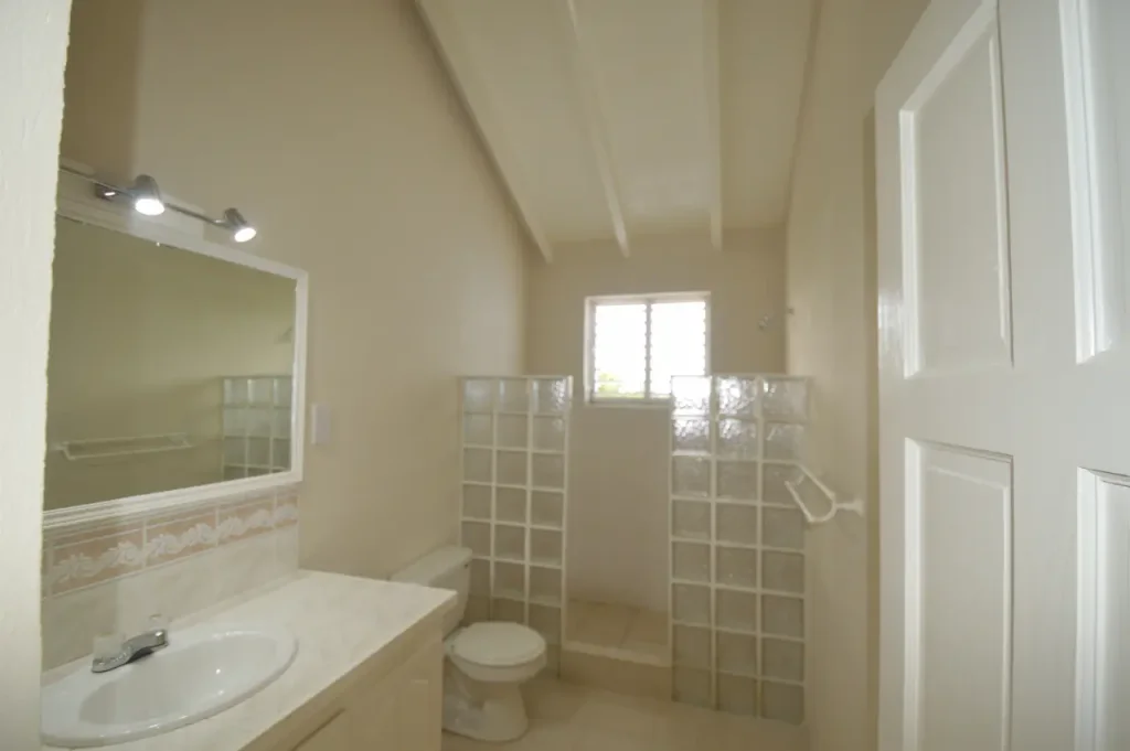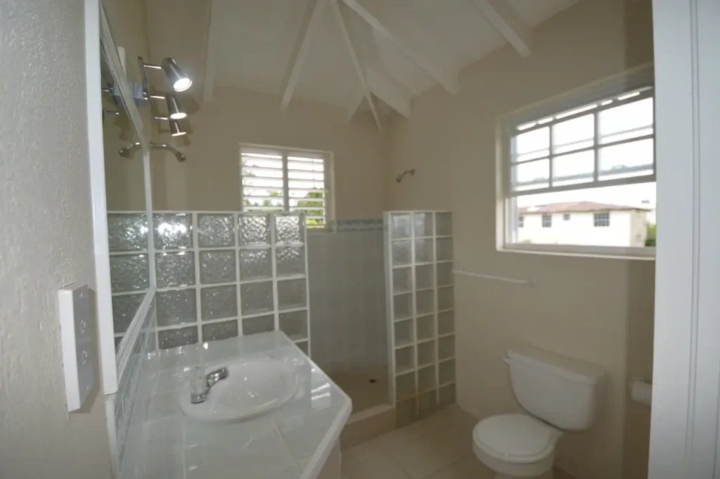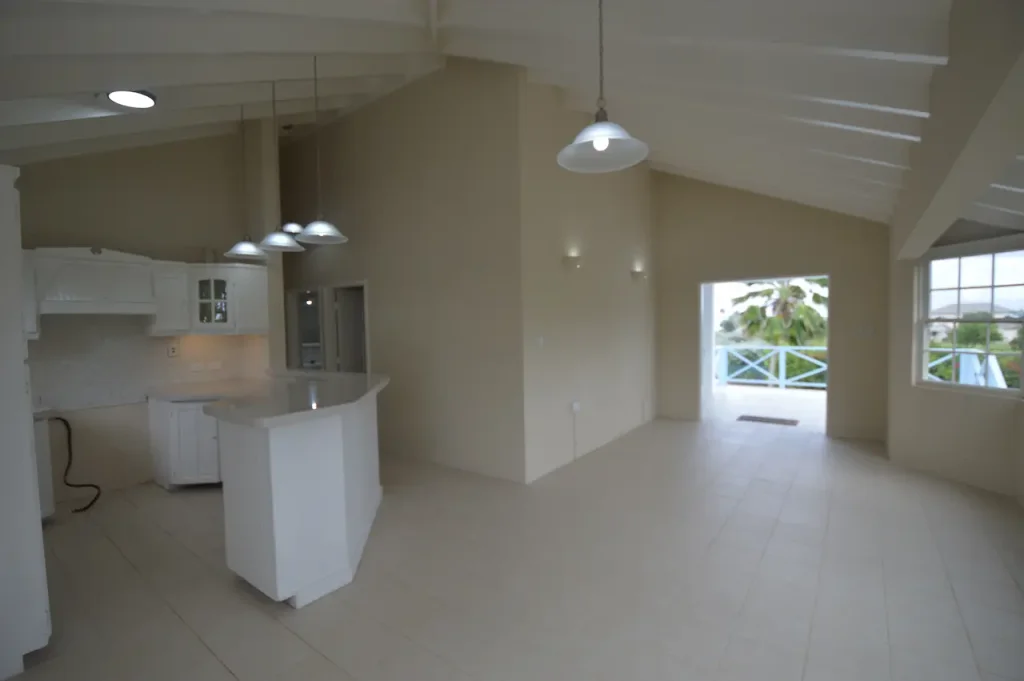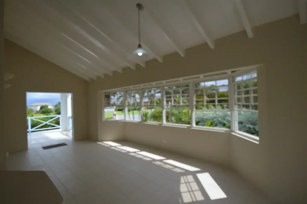 Thoughtfully designed over two storeys, the home’s primary living spaces are situated on the upper level to maximize the breathtaking sea views and the cooling tradewinds unique to the East Coast of Barbados. The heart of the home is an expansive, open-plan living and dining area that flows seamlessly into a modern kitchen, creating an inviting atmosphere for family gatherings. This bright and airy space extends onto a large, breezy patio—partially fitted with elegant Bahama shutters—providing a front-row seat to the shimmering Atlantic horizon. The upper floor also features a serene primary suite with a private en-suite bathroom, along with two additional generously sized guest bedrooms that share a well-appointed bathroom.