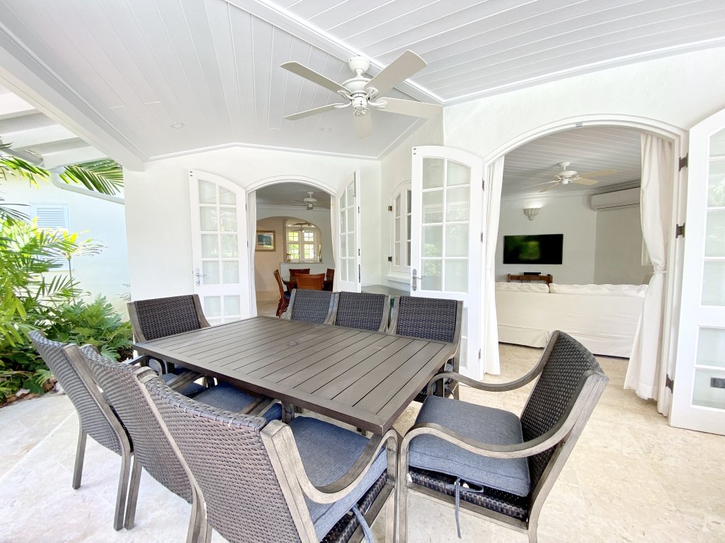 Welcome to Palm Grove 9, an exceptional 3-bedroom villa located within the prestigious Royal Westmoreland, one of Barbados' premier gated communities. This stunning residence blends modern luxury with traditional Caribbean elegance, offering a tranquil retreat amidst lush tropical gardens and providing ample space for both relaxation and entertainment.