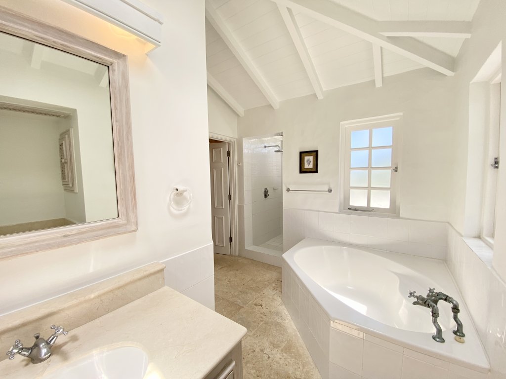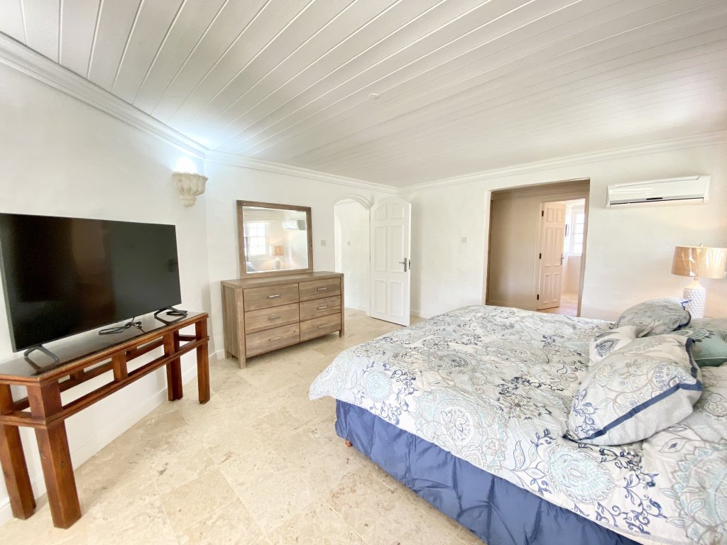 Master Suites: The upper floor houses two large master suites with private balconies, ensuite bathrooms, and ample storage space. Both suites are designed to offer maximum comfort and privacy, with stunning views of the lush gardens and the Caribbean Sea.