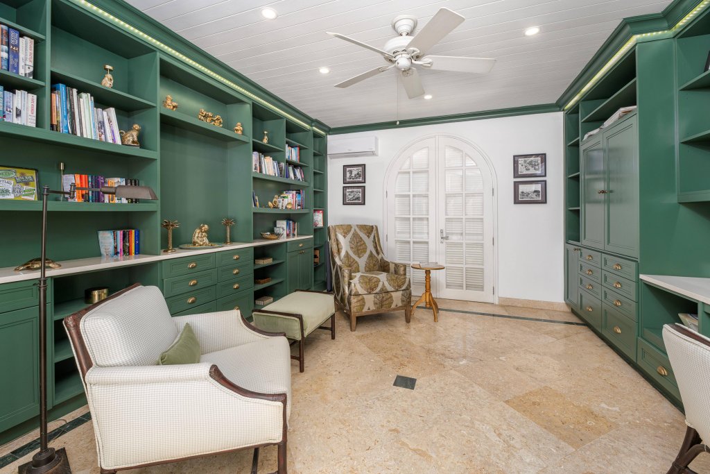 Sand Dollar is equipped with everything needed for a luxurious and comfortable stay. A dedicated study provides a quiet workspace for those who need to stay connected. A large laundry room with a staff bedroom and bathroom ensures a seamless vacation experience. Two powder rooms, a gym, and a single car garage add to the villa's functionality.