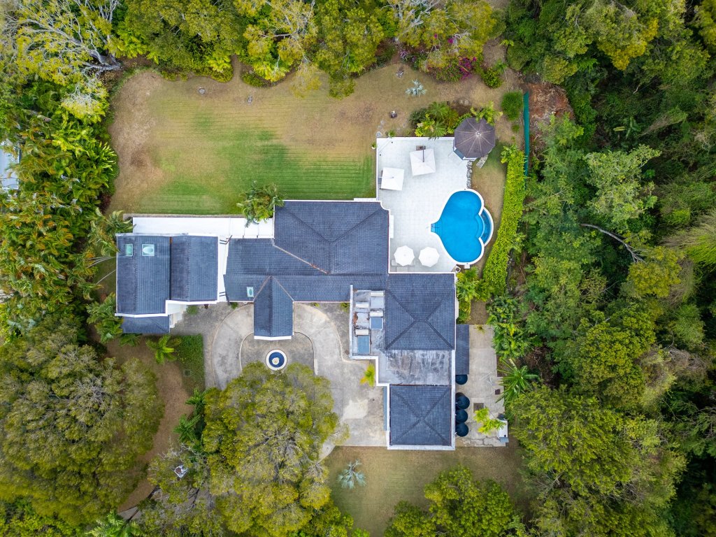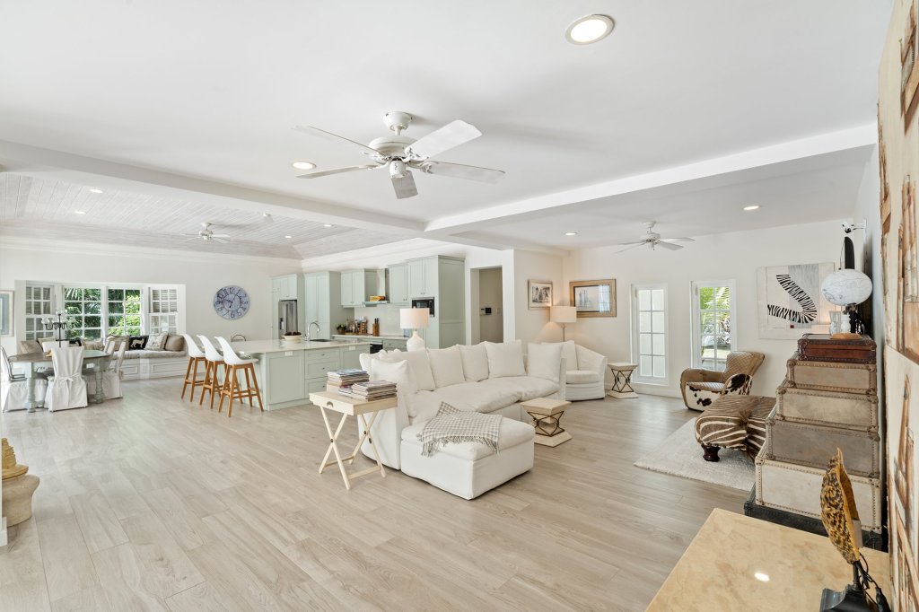 Inside, Casa Caoba greets you with a light-filled living room that flows seamlessly onto a wrap-around terrace. Perfect for entertaining, this spacious outdoor area features elegant dining and lounge spaces, fully stocked wet bar, sparkling pool deck, and charming gazebo surrounded by tropical gardens and majestic mahogany trees.