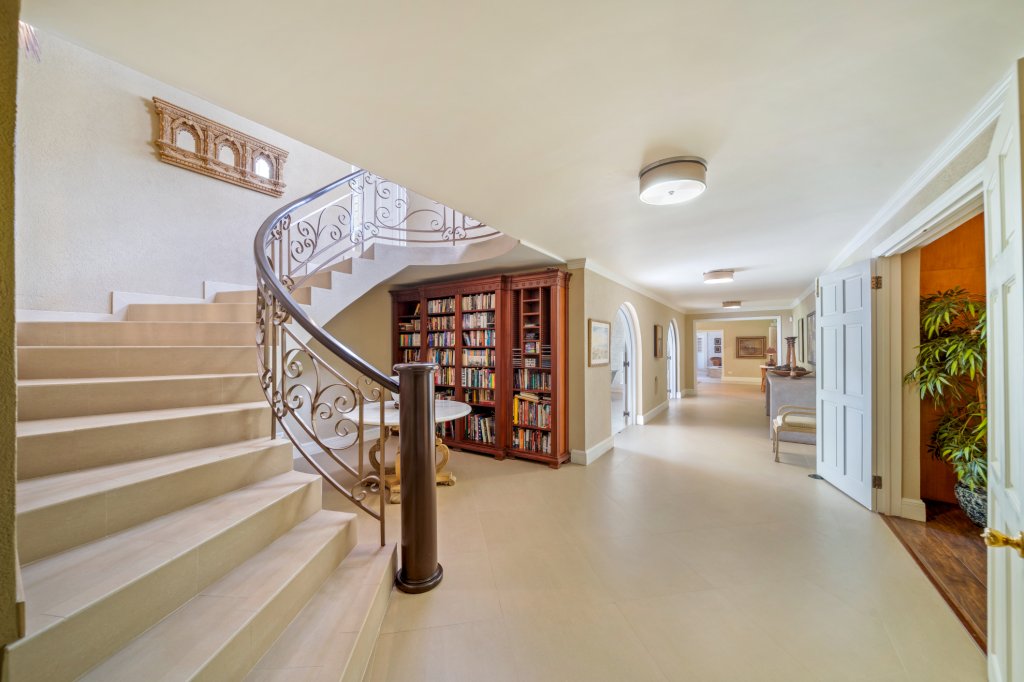 Grand Entrance Great Hall: The 1,100 sq. ft. entrance features a serene water feature and a Jacuzzi, creating an inviting atmosphere for guests.