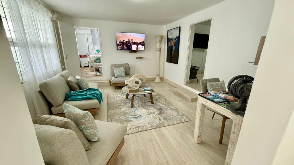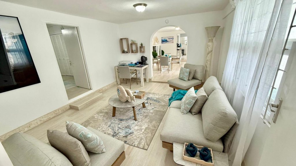 Set right on the sea, this fully furnished long-term rental in Barbados features breathtaking ocean views, cooling breezes, and an inviting outdoor space designed for entertaining and unwinding. The large garden and expansive deck come complete with a built-in bar, lounge chairs, and bar stools — the perfect spot for sunset cocktails or weekend gatherings with family and friends.