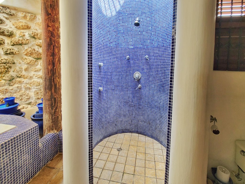 The property is tastefully furnished throughout and has many unique features throughout including high ceilings, automatic rain shutters, and open-air private master tub, custom made furniture and underground storage areas perfect for a workshop.