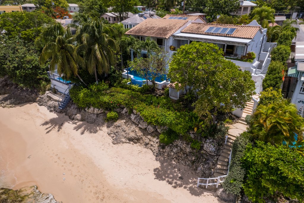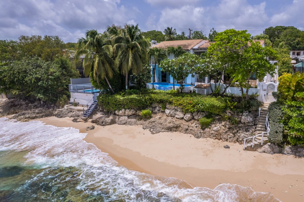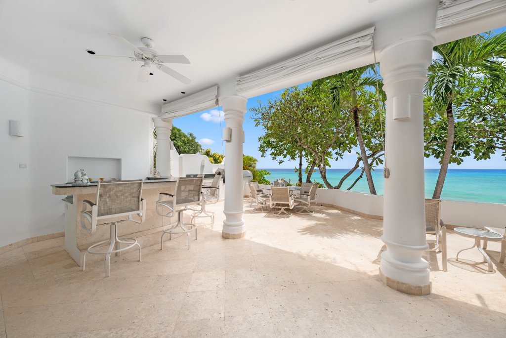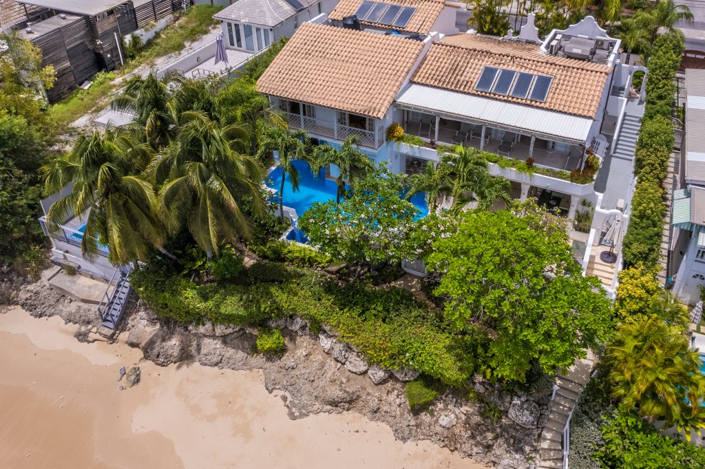 For Sale - The Beach Hut, Barbados. This elegant, 6,500 sq ft, split level beachfront property which was carefully designed to take advantage of the breathtaking views of the Caribbean Sea. Built in a fabulous, elevated location, this villa comprises of 6 bedrooms and 6 bathrooms; all rooms are air conditioned with piped music to every room and sun terrace.