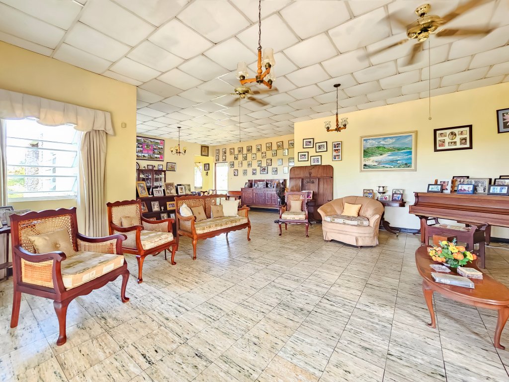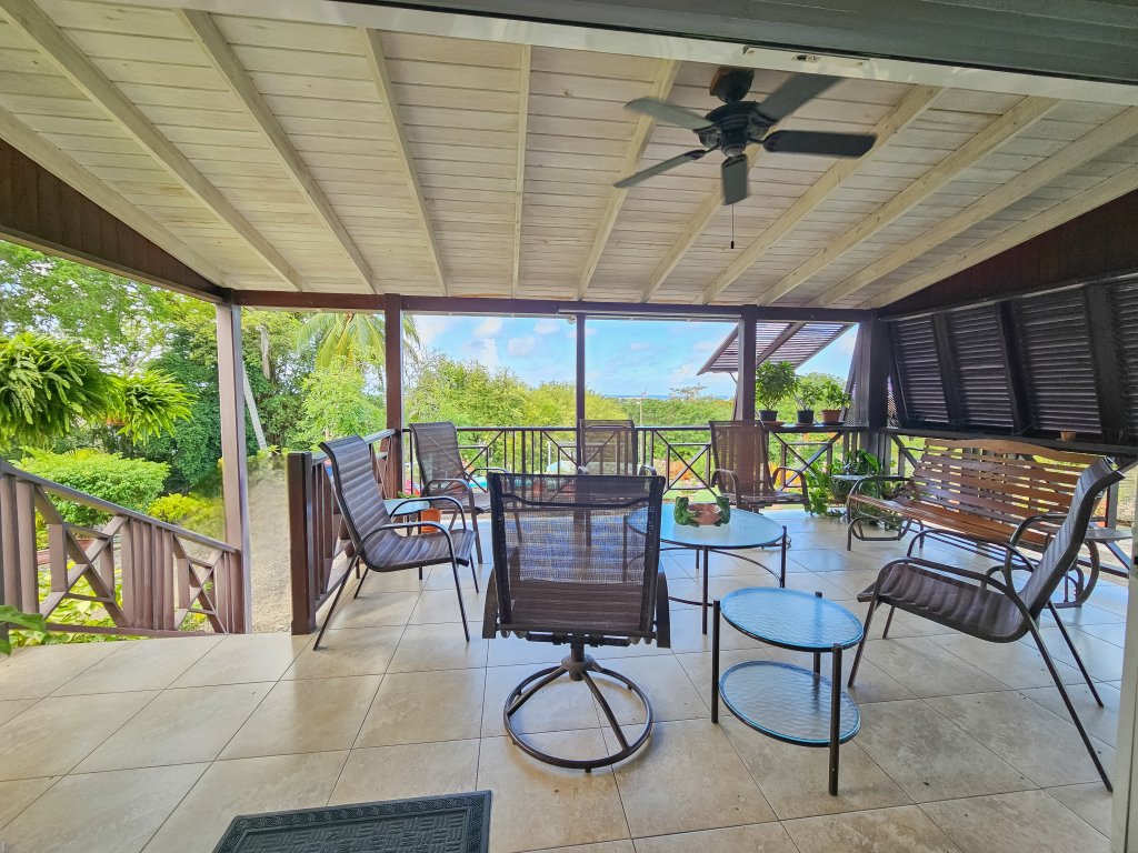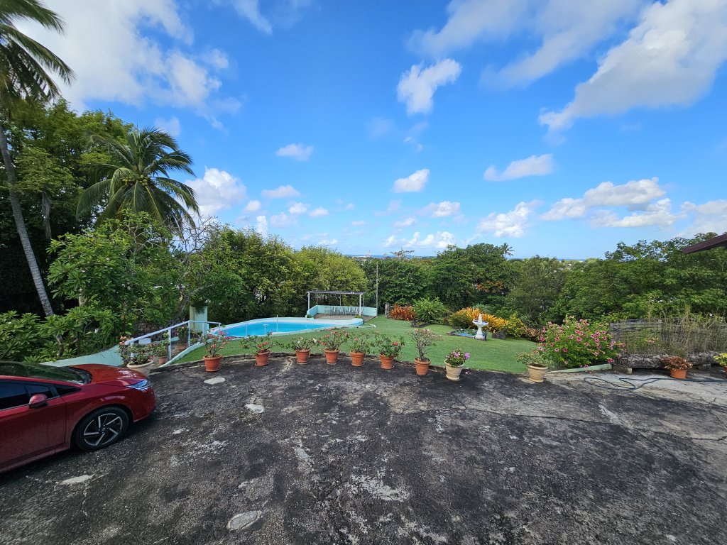 Discover this exquisite 4-bedroom, 4-bathroom home offering breathtaking sea views and a private freshwater swimming pool. Set on 75,000 sq feet of lush, mature gardens with numerous fruit trees including coconut, lime, mango, breadfruit, and avocado pear, this property is a tropical paradise. Enjoy relaxing moments on the covered gallery overlooking stunning vistas or take a stroll along the long driveway.