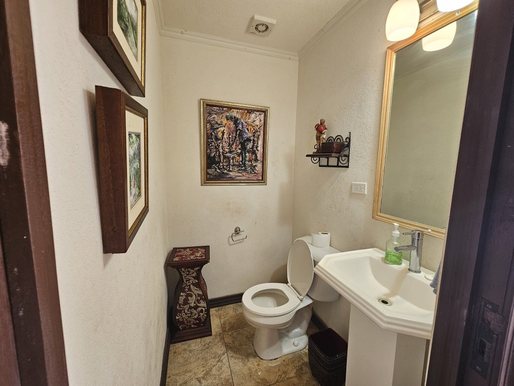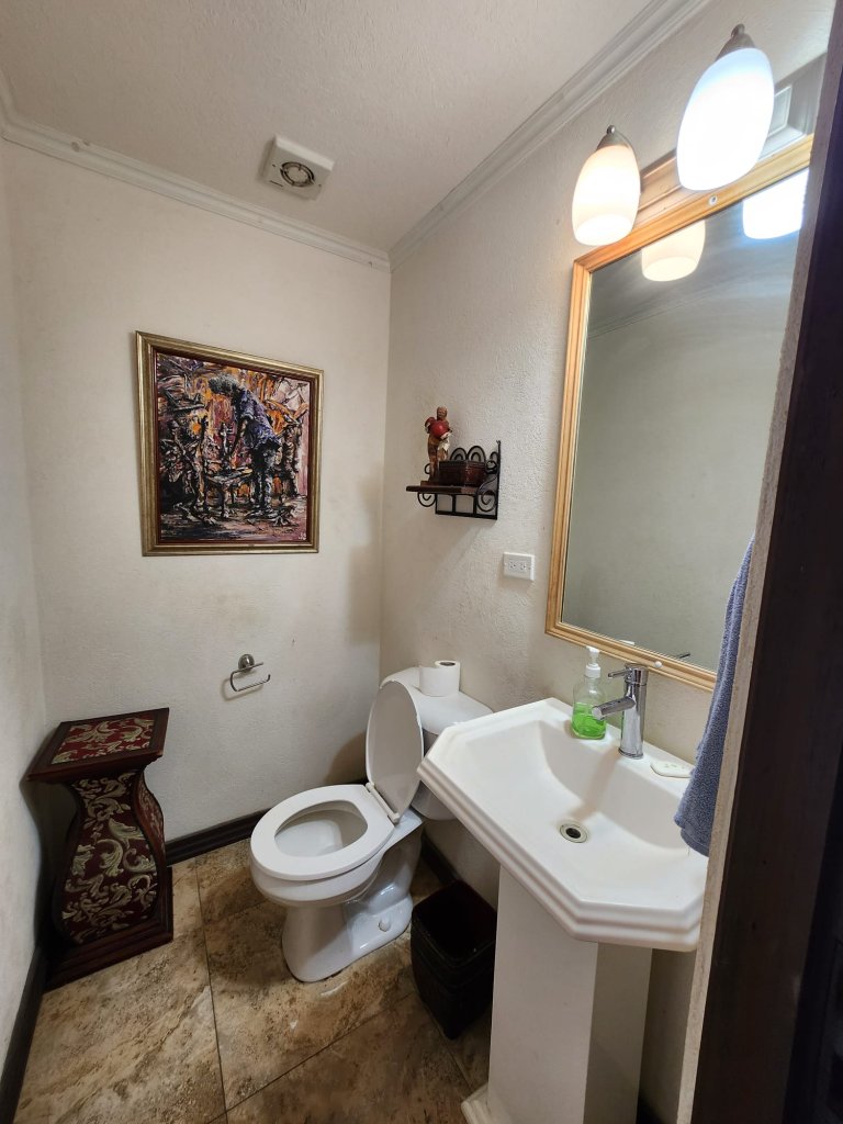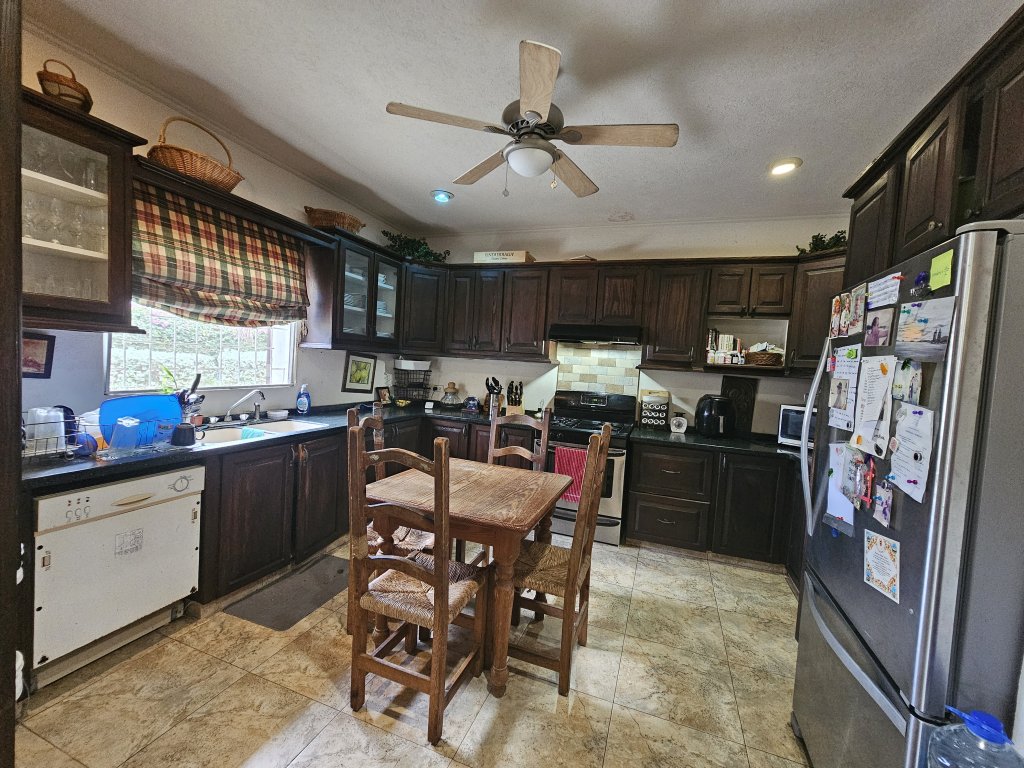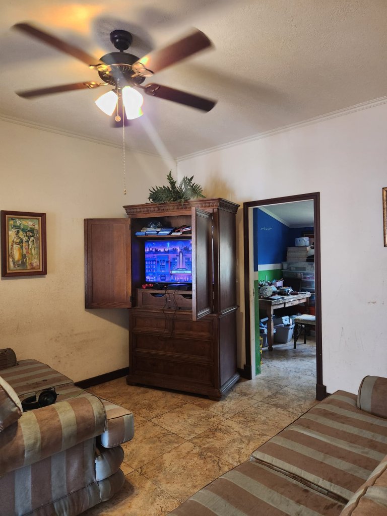 On the main level, you'll also find a cozy TV room, perfect for movie nights, as well as a versatile study/den that can be transformed into a home office or playroom. A convenient powder room is located nearby, making it easy for guests to freshen up. The living area opens out to a covered patio that invites you to relax and unwind with your morning coffee. Beyond the patio lies an open-air red clay tiled courtyard, a charming spot for alfresco dining or simply soaking up the Caribbean sun. Adjacent to the courtyard is a large laundry room, ensuring practicality and ease in your daily routines.